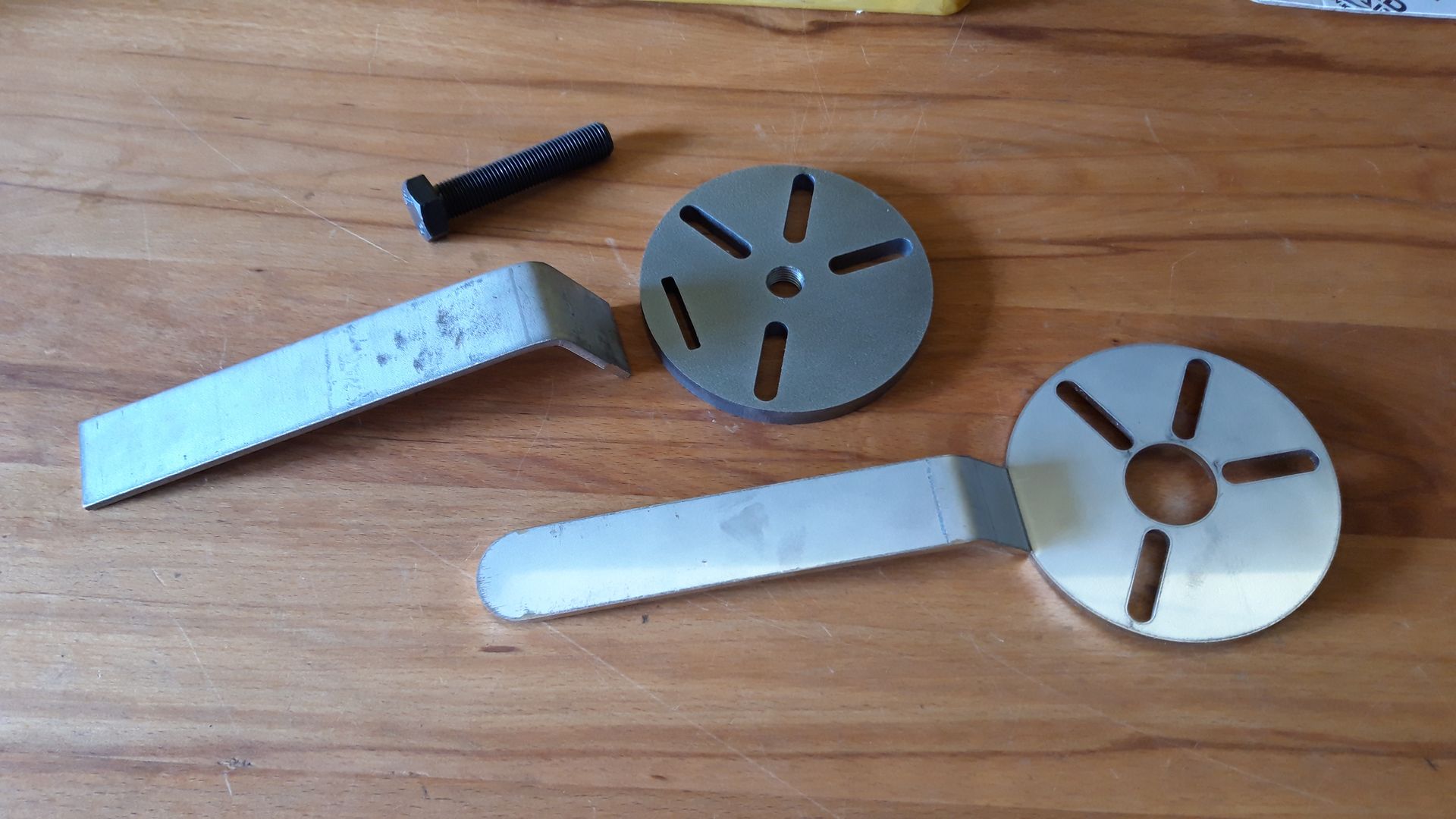Auf Wunsch und mehrfacher Nachfrage nun auch einzeln. Polradgegenhalter. Polradabzieher und KW Ausdrücker mit m14 Feingewinde. Polradgegenhalter ist aus 4mm Edelstahl Polradabzieher 10mm Stahl Passt natürlich auch bei der Mito, TZR, DT.