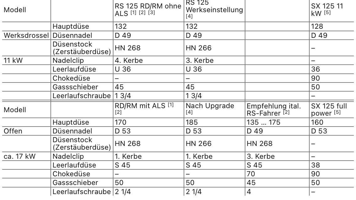 Ich bin der Jürgen und habe für meinen Sohn Jan eine RS125 RM Bj. 2008 gekauft. Das Moped hatte erst 14.000km war im Orginal Zustand mit allen Papieren vom Kauf beim Händler bis jetzt. Es wurde ausgeliefert mit einem 80km/h Drosselkit von Alpha, später wurde es auf eine 11KW Drossel (Alpha) umgebaut wie wir es dann auch übernommen haben. Mein Sohn hat zwischenzeitlich 7.000km drauf gefahren und die Überholung des Zylinders war fällig. Ich habe ihn gehohnt und einen neuen Kolben montiert, die Auslasssteuerung gereinigt und wieder gangbar gemacht-soweit alles gut! Nun wollte ich zu Testzwecken die Auslasssteuerung aktivieren, das Magnetventil spricht an wenn ich es mit Spannung ansteuere, es funktioniert aber nicht wenn ich die Drossel entferne und wie vorgesehen in den Stecker im Kabelbaum anschließe. Der Motor dreht ohne Drossel nur ca. 8.000U/min und ich finde nirgends einen Drehzahlbegrenzer -woran liegt das?