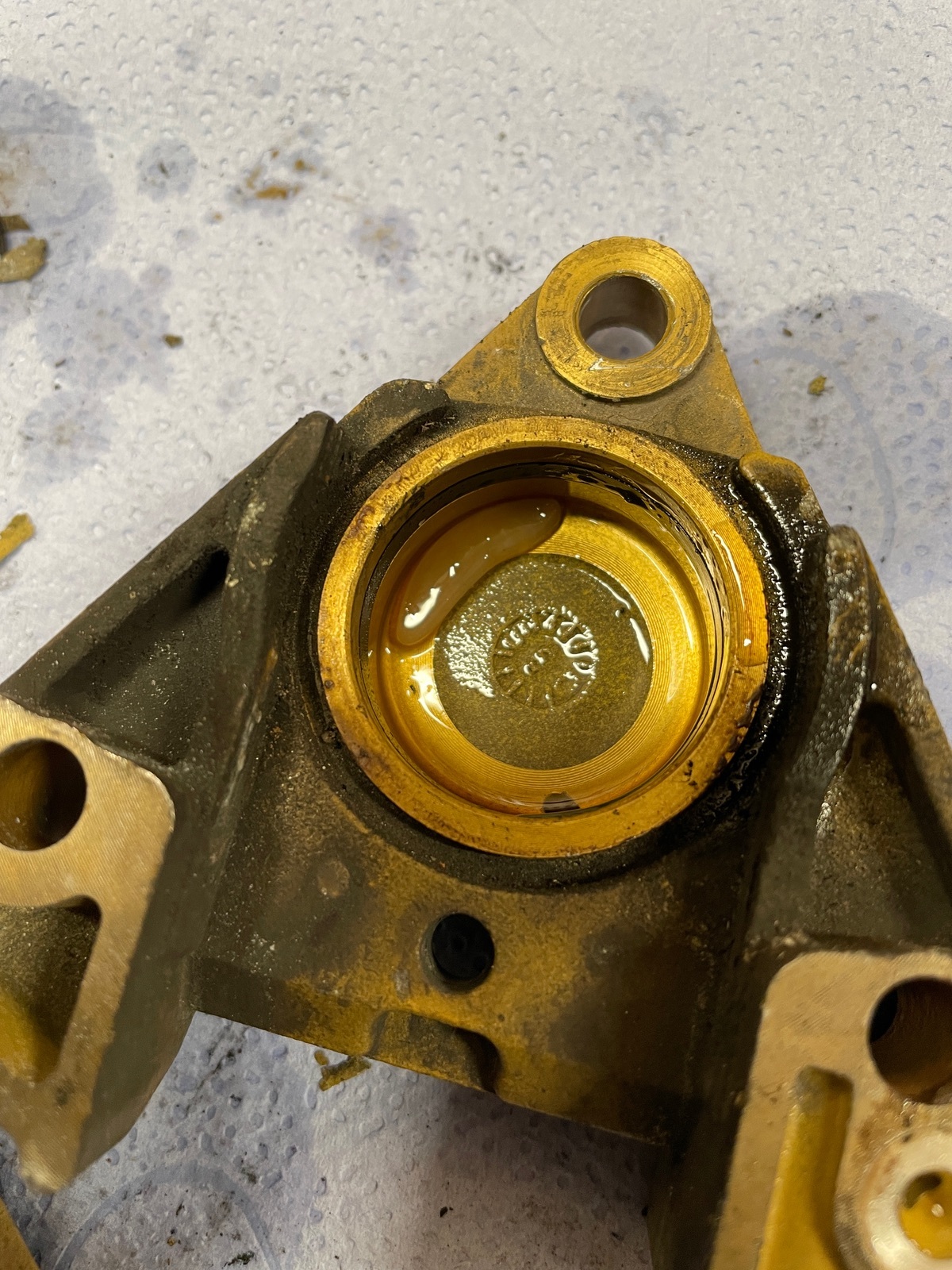 In dem hinteren Sattel hab ich beim zerlegen eine art Gelee artige masse gefunden, beide Kolbenseiten und im verbindungskanal… was ist das?