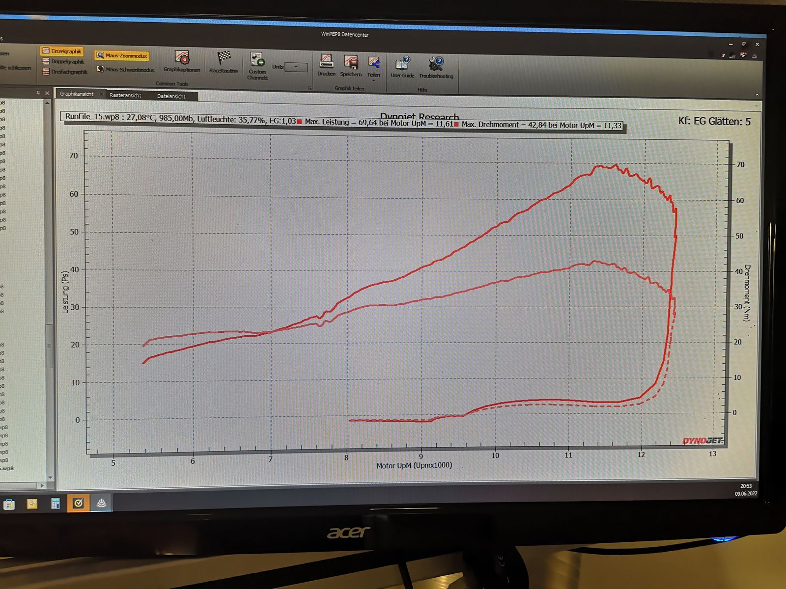 Habe aber nix auf dem Prüfstand gemessen, sondern alles oldshool auf der Straße mit Stopuhr und EGT rausgefahren.