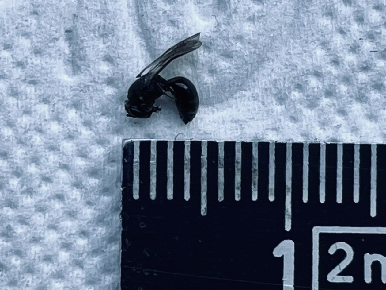 Ein Tierchen habe ich heute noch entdeckt: Das einige Millimeter große Fluginsekt befand sich zwischen dem Schwimmernadelventil und dem Benzinfilter am Zufluss. Vielleicht in den Tank gefallen und dann vor den Filter gespült worden. Bei einer Prüfung des Filters ist es dann weiter durchgefallen.