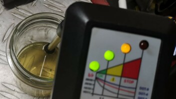Leider hatte ich nicht die Möglichkeit den Siedepunkt der alten Flüssigkeit in °C zu messen sondern "nur" den Wassergehalt per "Widerstandsmesser". War wohl laut Tester schon nach einem Jahr nicht mehr wirklich Top: