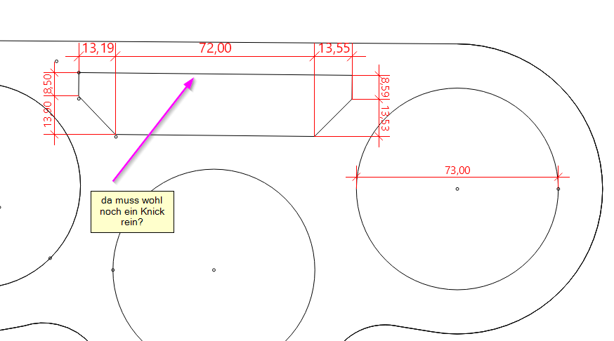 Die Länge des Schlitzes stimmt ja, davon, das Maß habe ich. Daraus kann ich den Überstand rechnen und die Zeichnung fertig machen.