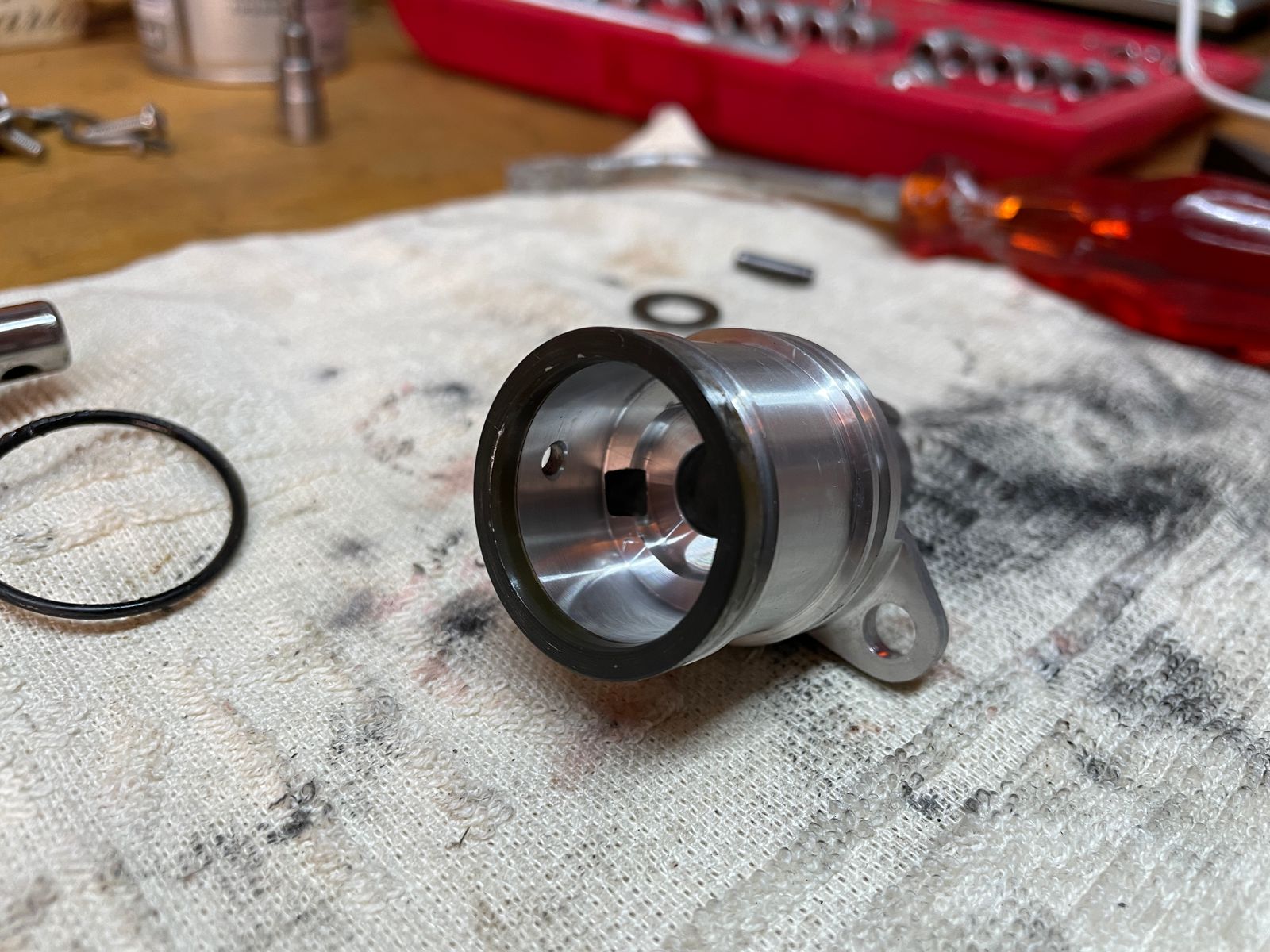 Allerdings fing die Gute bei den letzten Testläufen an Kühlflüssigkeit zu verlieren - aus der Ablaufbohrung der Wasserpumpe, also vermutlich die Wellendichtringe und O-Ringe, also Wasserpumpe raus.