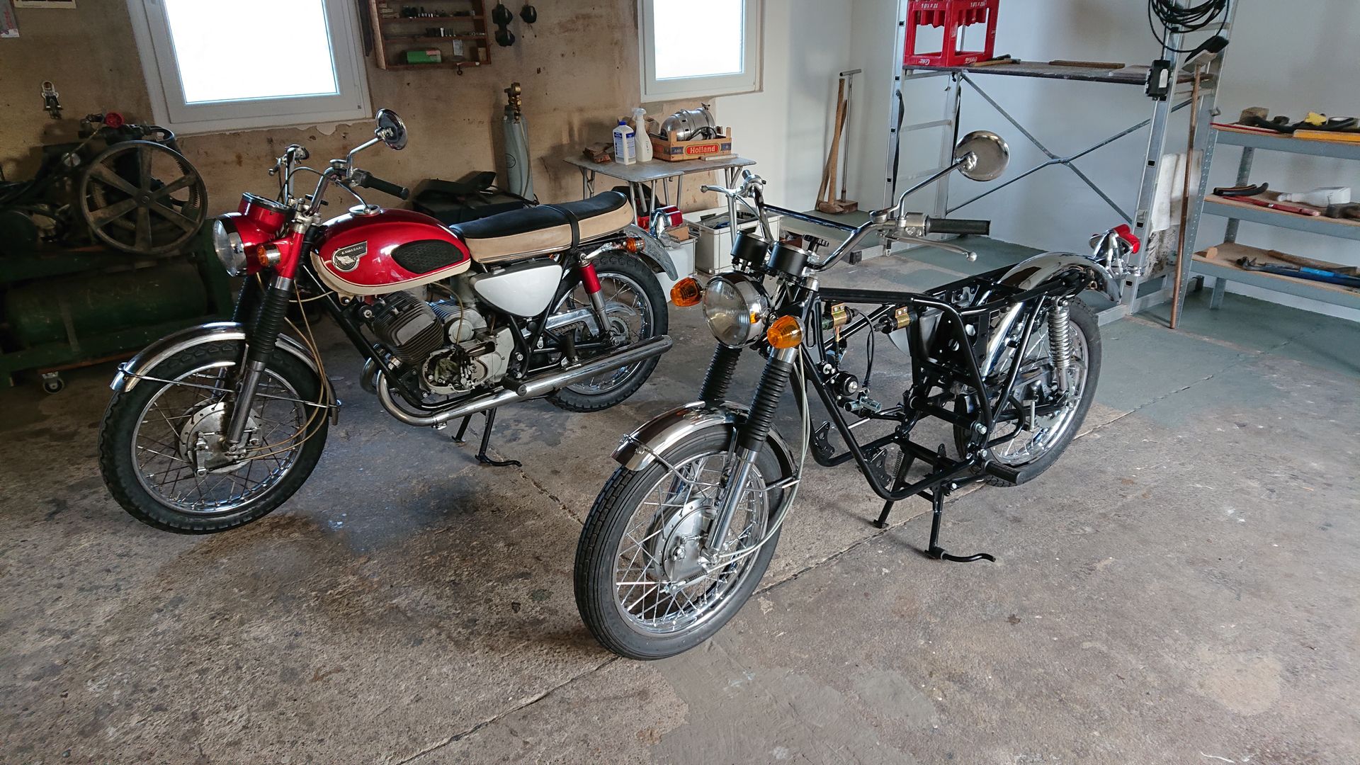 Hallo allerseits. Parallel zur Wiedererweckung meiner H1D bin ich gerade dabei einer 69er Kawasaki A1 als A1SS wieder aufzubauen. Ach da versuch ich euch mal auf dem laufenden zu halten.