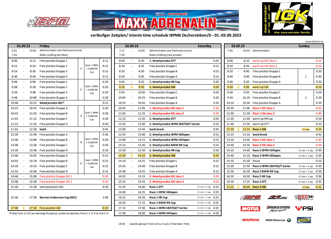Kannst du wenn OSL ist, bitte diesen Zeitplan auch einstellen. So kann man für nächstes Jahr evtl. mal eine oder zwei Veranstaltung planen.