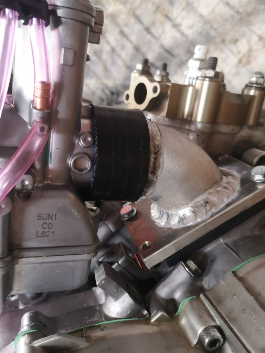 Eine parallel Twin ist das platzmäßig nicht zu schlagen. Auch Leistungmäßig gibt es keine Nachteile. Eigene Stutzen waren aufgrund der Vforce Membran notwendig. Die Öffnung ist nur geringfügig größer als die Fläche eines 38er Vergasers.