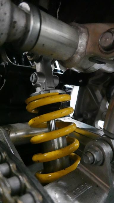 Mein Federbein hat 80mm Durchmesser und das passt nicht. Die Öhlins TTX sind glaub ich dünner, da nur 36mm Kolben.