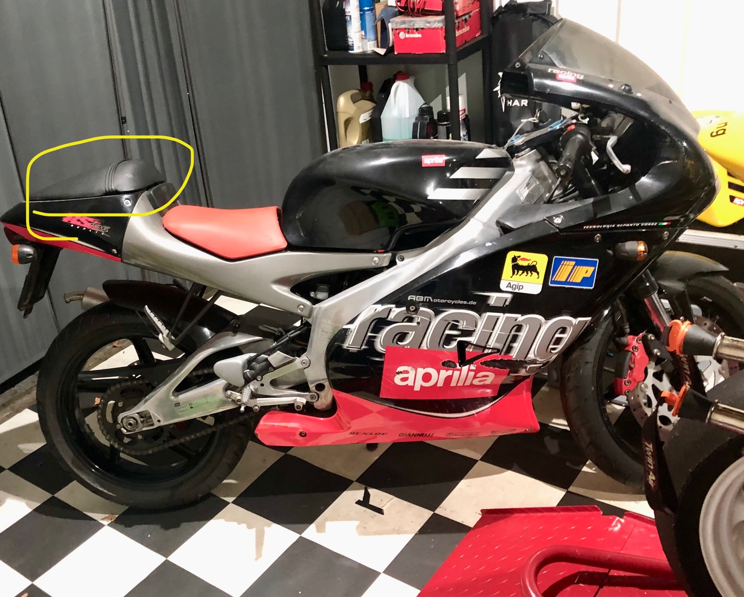 Egal, ich hab’s nun :thumbs_up_medium_light_skin_tone: Das Ding ist aus GFK und wird anstelle des Sitzbrötchens verbaut. Braucht noch bisschen Liebe und Lack. Ist das Aprilia Schwarz Uni?