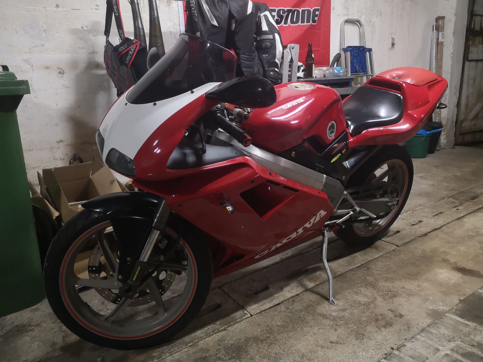 Durch Verkettung günstiger Umstände ist meine eigene damals verkaufte Cagiva Mito 125 8P mit 7G Getriebe wieder nach Hause zurück gekehrt. Da nun gut 13 Jahre dazwischen liegen soll sie von meinen in der Zeit dazu gewonnen Erfahrungen profitieren. Heißt sie bleibt weitgehendst straßenkonform, bekommt aber ein "SP update"