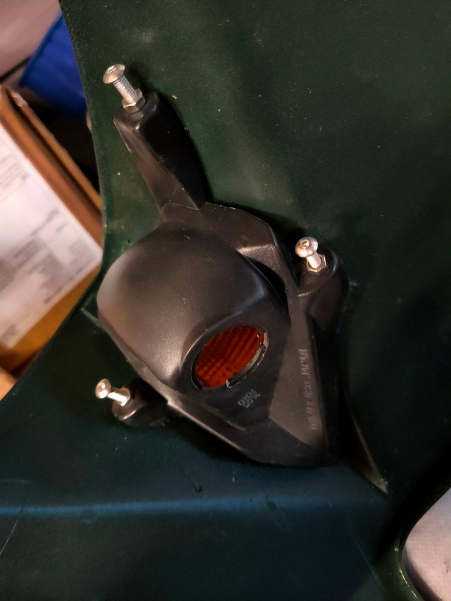 Die Blinkeröffnungen sind ein paar mm zu klein. Auf dem Foto müsste man links einiges wegarbeiten, damit die Asia-Leuchten ganz reinflutschen. Habe sie erstmal so festgezurrt - fällt kaum auf. Vielen Dank nach Gerstetten für die Überlassung der raren Dinger.