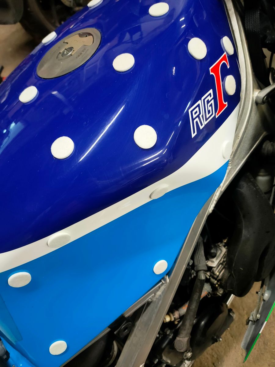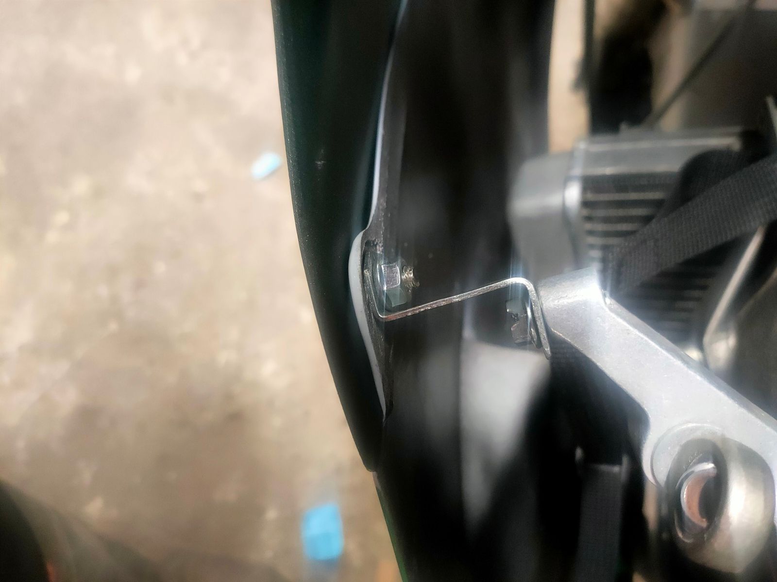 Links ist um ca 15 mm verpeilt. Am Fixpunkt oben und am Kielhalter geht gar nichts. Kann auch mit am großen Kühler liegen, denn auch das "original" Nachbauteil lässt sich dort nur mit freundlichem Nachdruck verschrauben. Wenn etwas Ruckelei bei gelöster Frontverkleidung nix bringt, bastel ich neue Halter. Keine große Sache.
