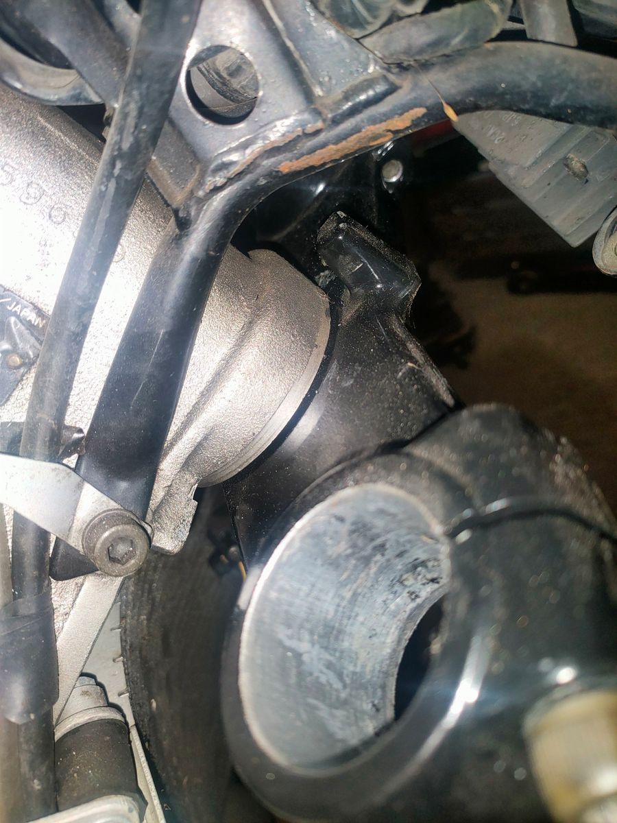 Diese Gewindestutzen im Guss der GSXR-Brücke untenrum sind im Wege. Können weg.
