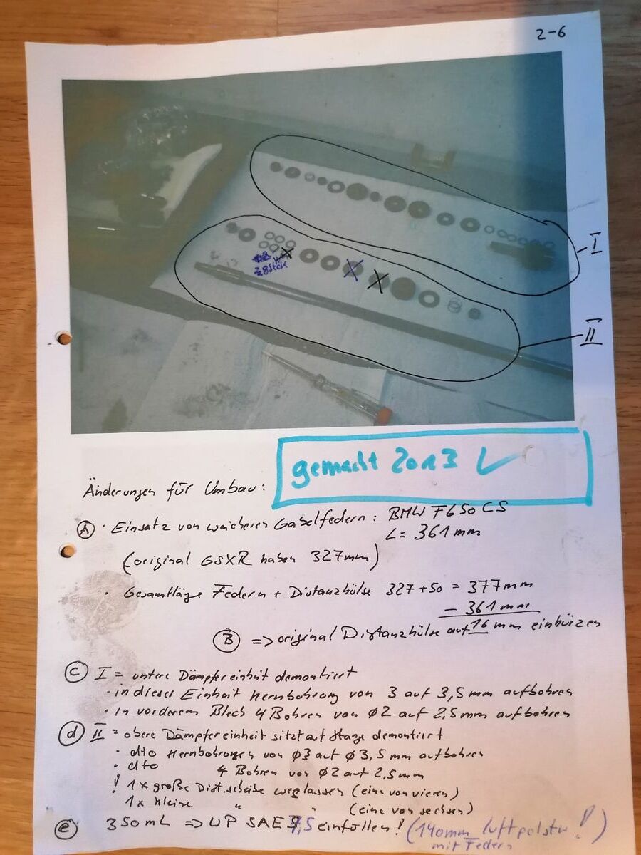 Bei einer späteren Gamma, habe ich die GSX R 1100 Gabel selber mal überarbeitet...