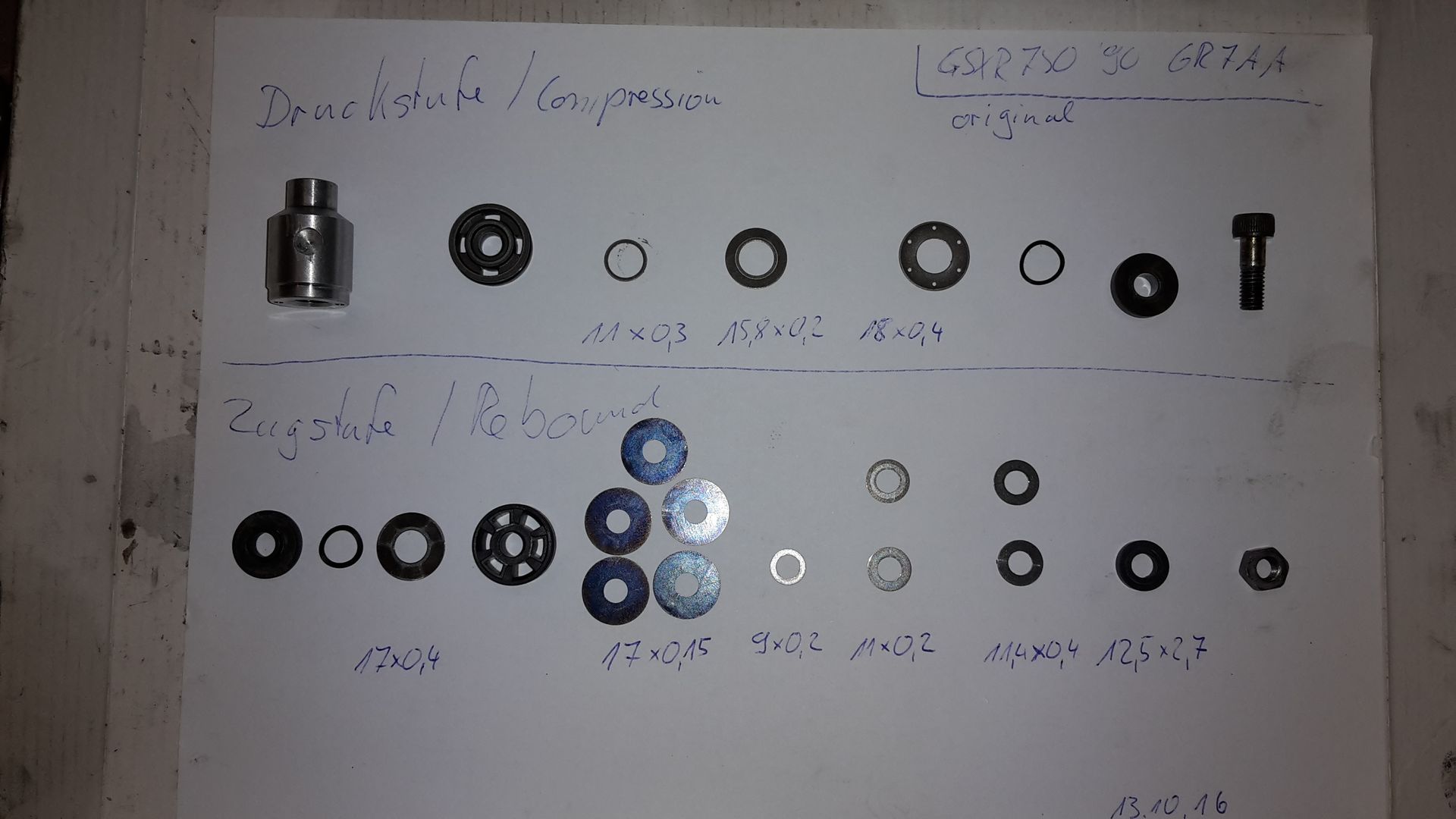 Ich hab die Druckstufenkolben gegen Gold Valves von Racetech.com getauscht und die Zugstufe anders geschimmt.