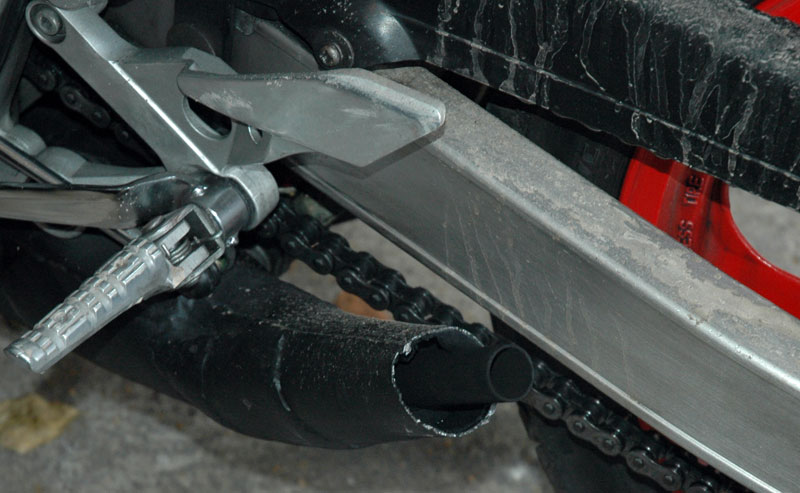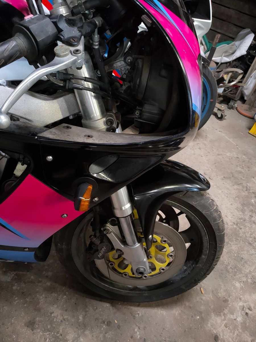 Für die letzten Touren wird die RG hübsch gemacht. An der China-Plaste haben sich noch paar kleinere Schäden aufgetan, also runter damit. Das originale Gewand ist schnell aufpoliert mit Glasreiniger und Radglanz. Endlich die Carbon-Flöten zurechtgemacht und montagiert. Wo alles runter war, gleich den Scheinwerfer rausoperiert und repariert. Hing planlos in der Gegend, weil der fixe Haltepunkt des Einsatzes ausgejackelt war.