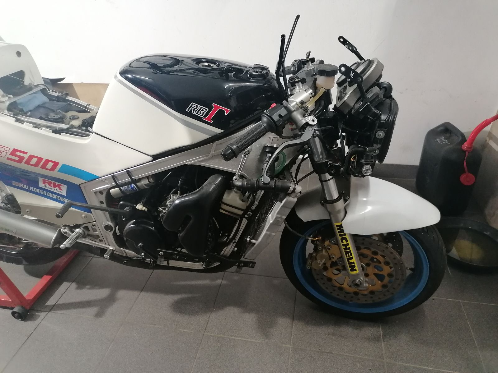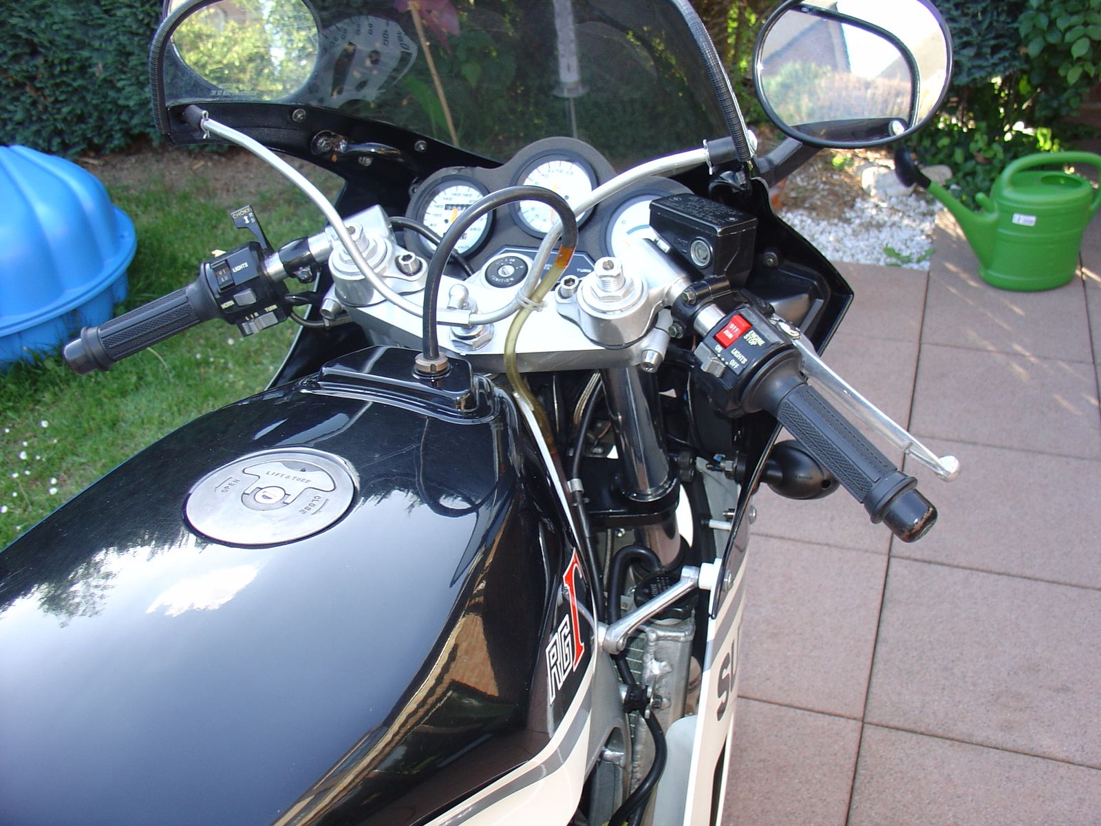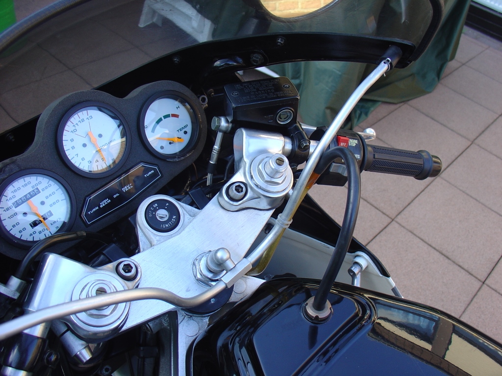 mit GSX R 750 Gabel, Cockpit, andere Lenker (CBR1100) und etwas BREMBO