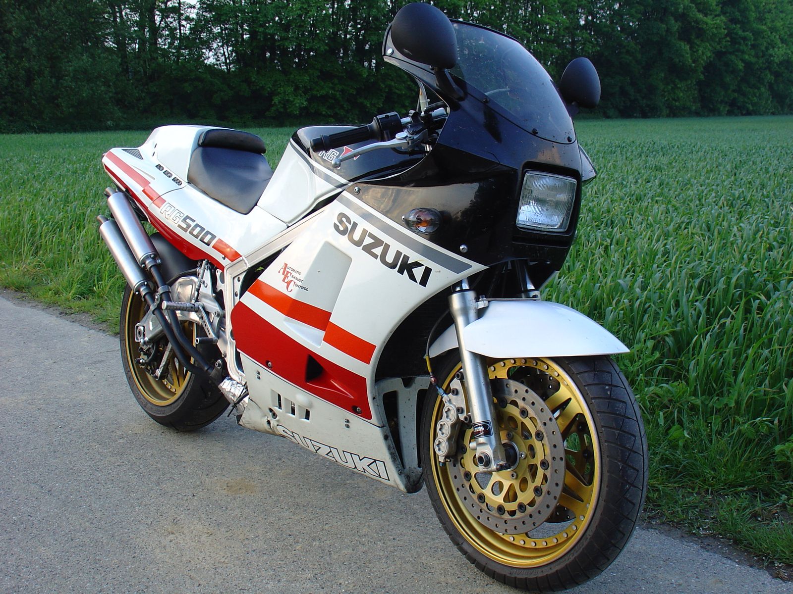 Bei der letzten Baureihe der 600er SRAD gibt es eine konventionelle Telegabel, die in Druck- und Zugstufe einstellbar und zudem recht leicht ist (vergleichbar mit aktuellen Material). Ob die lang genug für die RG ist, kann ich allerdings nicht beurteilen. Die dazu passende Bremsanlage ist ebenfalls überzeugend.