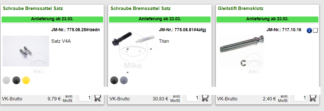 Gibt´s die Bremssattelschrauben noch neu? In den Explosionszeichnungen sind diese gar nicht als E-Teil aufgeführt.
