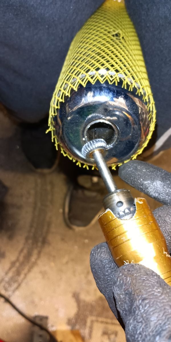 Das Rohr was man sieht nennen wir Endrohr, das habe ich gekürzt von hinten mit einem passenden Fräsaufsatz.