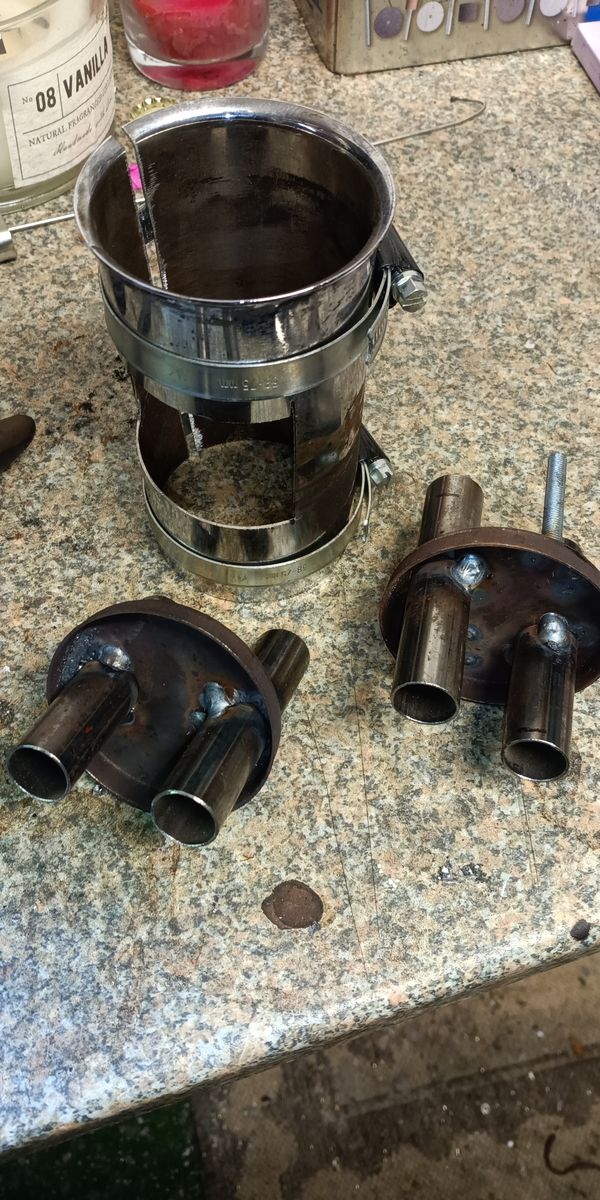 In meiner Schrottkiste habe ich noch 3 Prallplatten von Nachbauschalldämpfern gefunden, welche ich für meine Zwecke umbaue, dazu habe ich die angeschweißten Röhrchen entfernt.