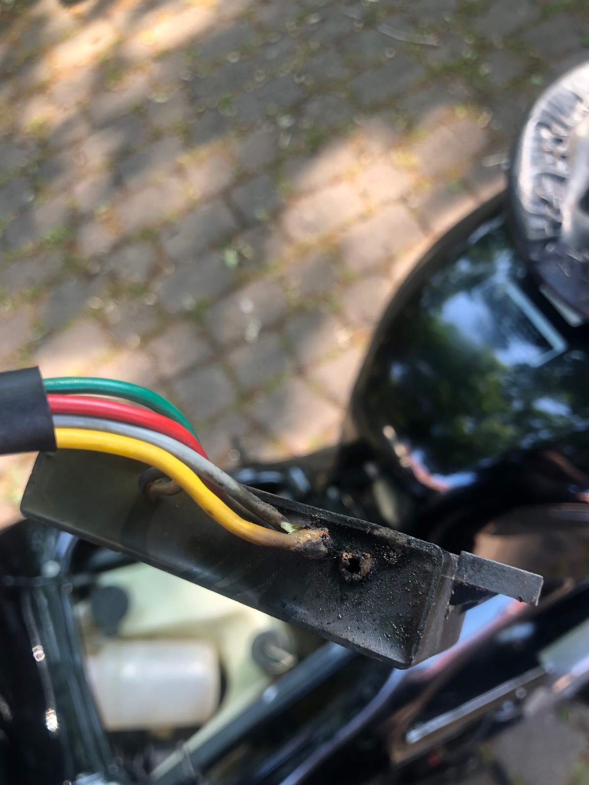 Ich rechts angehalten Heck runter gebaut weil es sehr verbrannt roch und musste Festellen das mein Steuergerät (7800) durchgebrannt ist.( Loch im Steuergerät siehe Bild)