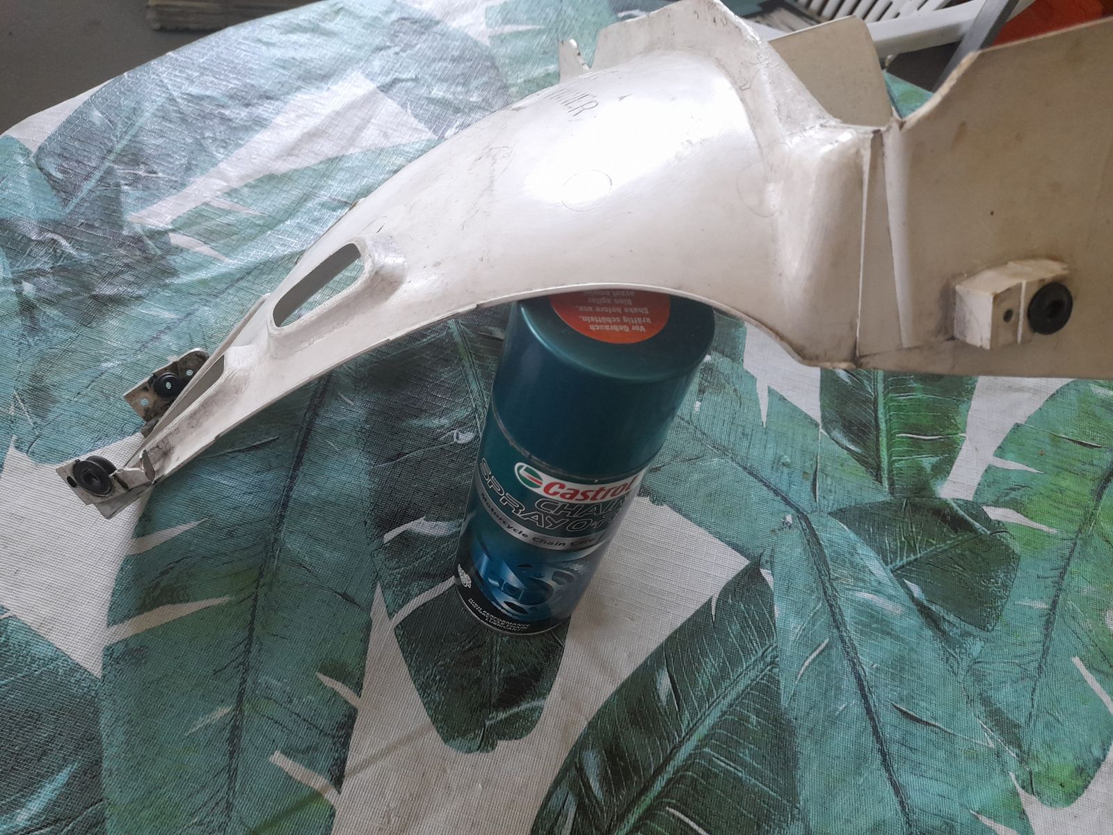 Der ganze März und der April vergingen mit Arbeiten an der Verkleidung, Sitz… Erst hatte ich vor, eine Nachbauverkleidung dranzumachen für kleinere Sportveranstaltungen und schon 2 Seitenteile von Motoforza besorgt. Habe aber später umgeschwenkt auf Originalaufbau, weil ich für diese Sporteinsätze eine RGV habe.