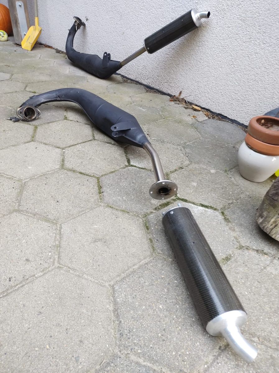 Natürlich war ich als erstes auf der Suche nach Teilen zum optimieren, wo fängt man da wohl an? Natürlich Auspuff und Vergaser passend einstellen 😉 Eine andere Auspuffanlage war im Prinzip dabei, jedoch keine Ahnung was für eine. Habe bereits schon geschaut aber keine ähnliche gefunden. Vielleicht kennt die hier jemand?