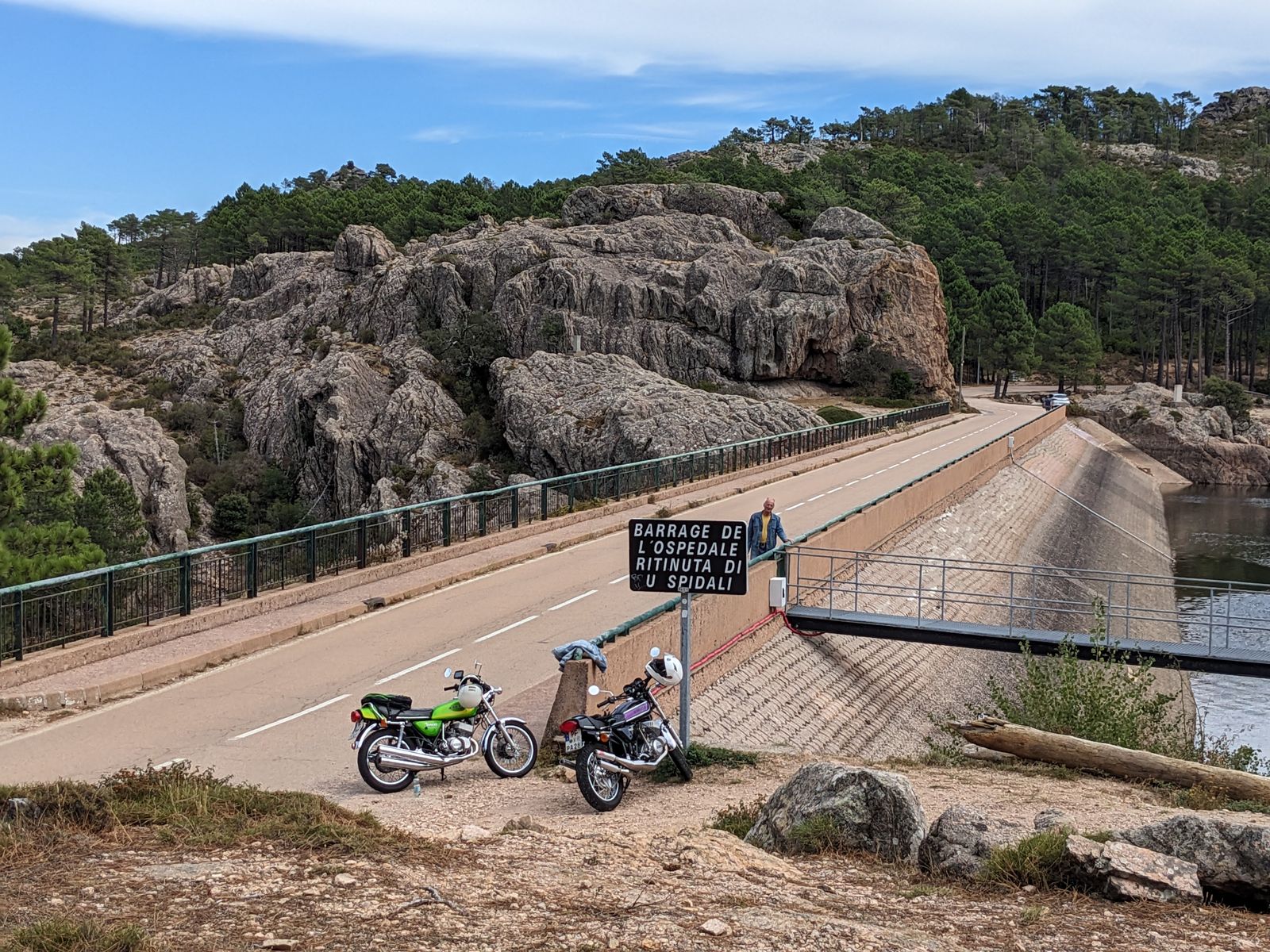 In der zweiten Woche kamen dann unsere Nordlichter mit ihren Yamahas dazu - Karen mit der TDR und Volker mit der TZR 125 , zu diesem Zweck sind wir nach einer Woche an die Südwest Küste in die Gegend von Propriano umgezogen -- mit identischem Hinterland , nur alles diesmal etwas weiter westlich gelegen -- die Strassen dort sind eine Lebensaufgabe , um die wirklich kennenzulernen...