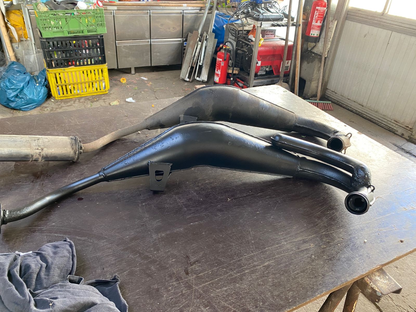 Auf dem Bild ist das der vordere Auspuff (neu lackiert).
