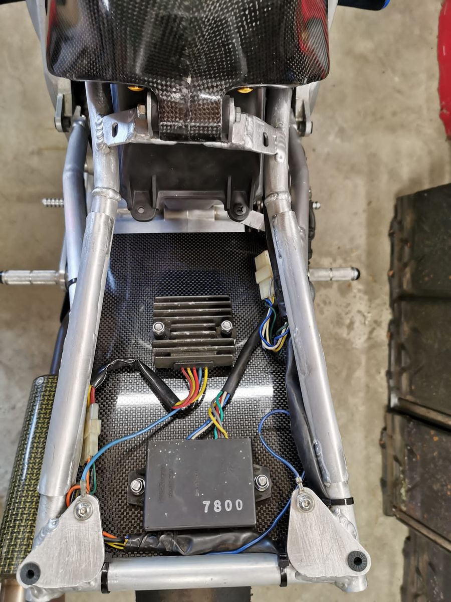 Am Heckrahmen kann man einiges an Gewicht einsparen. Ich hatte damals den Stahlrahmen aus Aluprofilen nachgebaut (alles genietet) und entsprechend die Haltepunkte für das Honda Rs125 Heck angebracht. Hatte nie Probleme damit und war recht einfach zu bewerkstelligen.