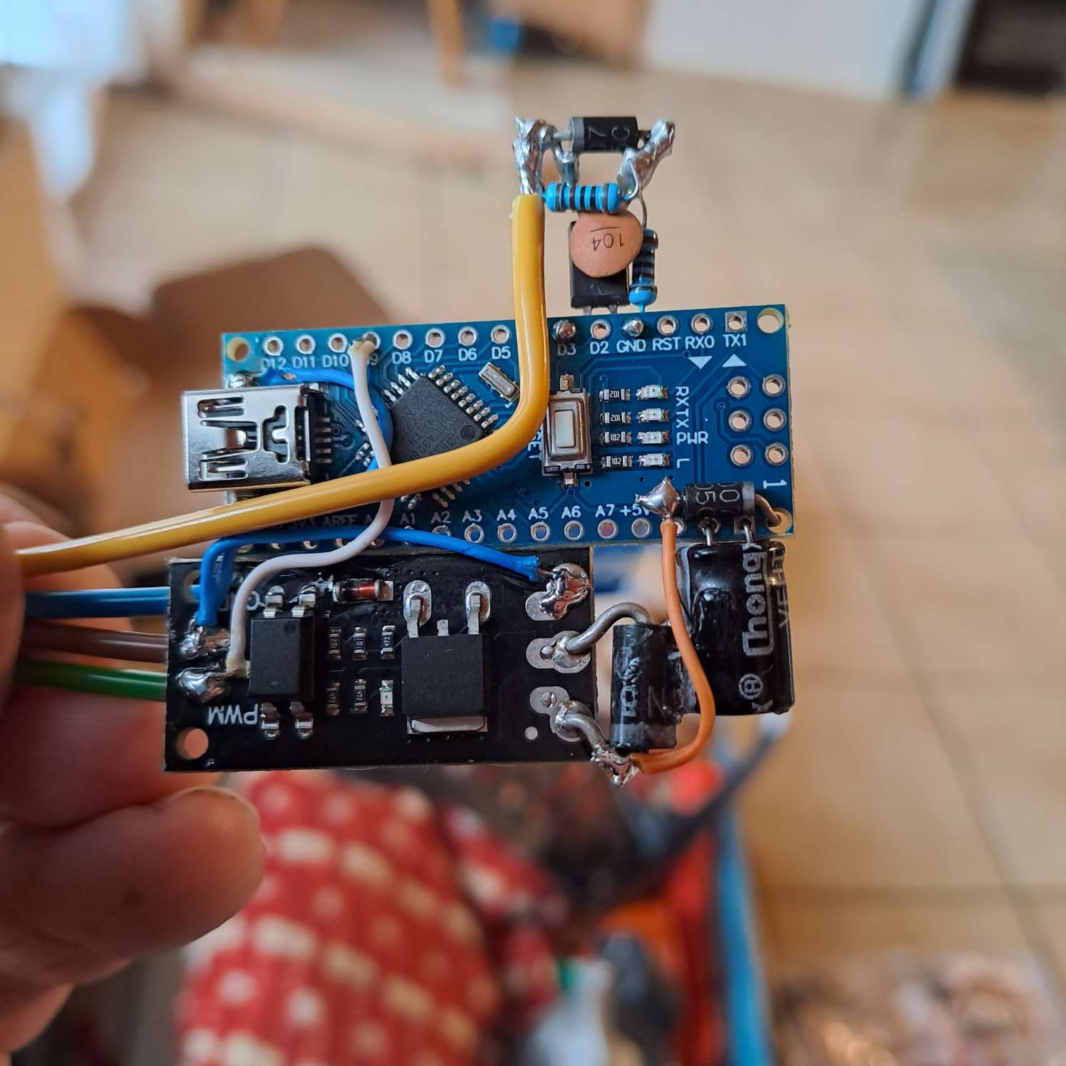 Die bekommt dann Magneten an die Triggerpunkte und das Signal greif ich dann mit Hall-Sensoren ab.