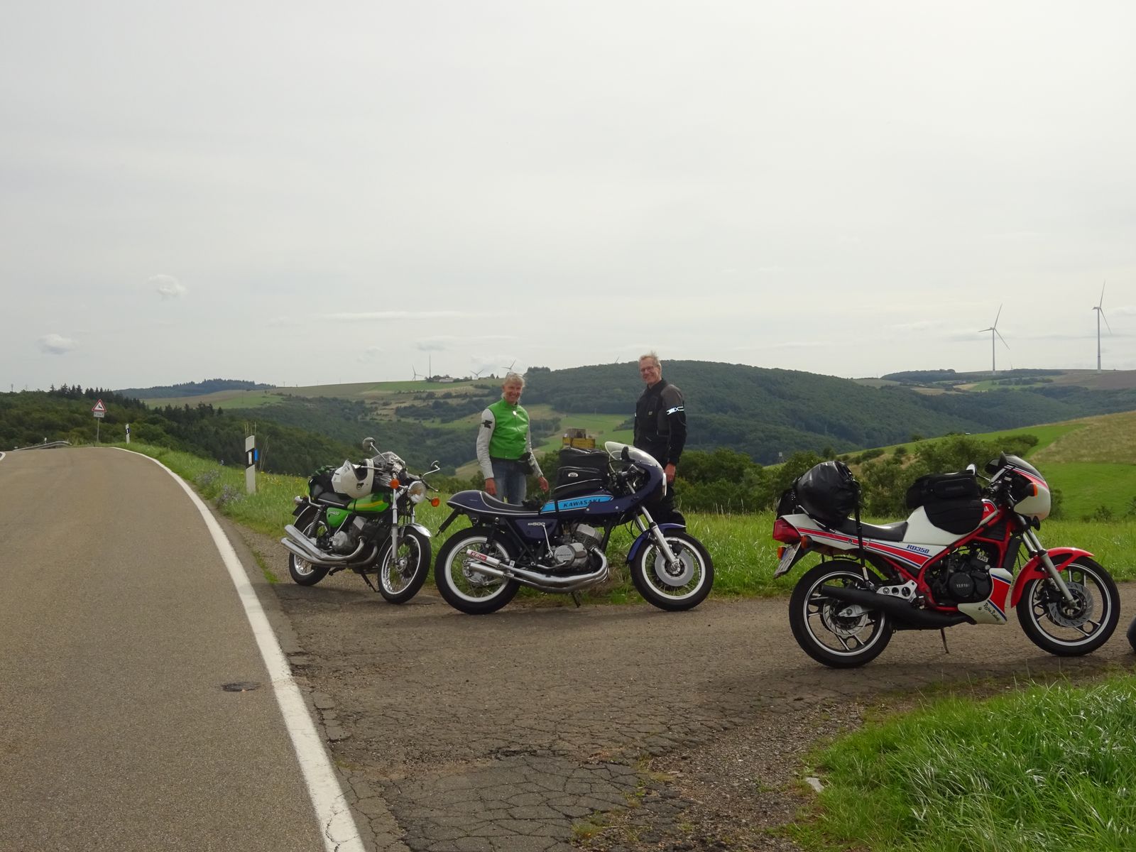 Nächstes Ziel war Helmuts Zweitakttreffen in Hochstetten Dhaun , das immer sehr nahe an unserem H2 Treffen stattfindet --sind immer nette Leute dort - samt ihrer schönen Yamahas -- freuen sich aber immer ehrlich über ihre Dreitaktenden Brüder...