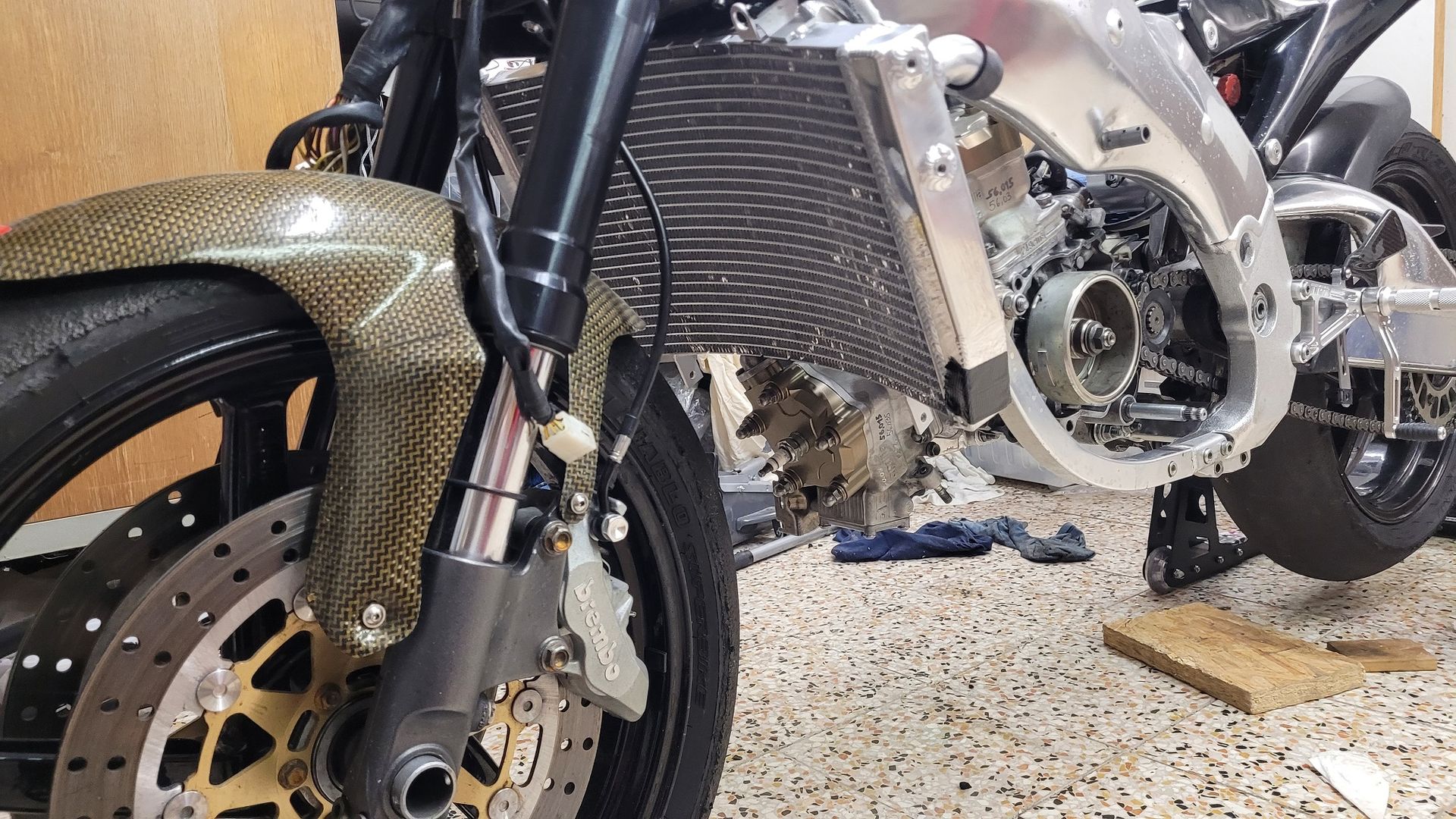 So jetzt muss ich noch überlegen wie (und wie hoch) ich den Kühler am Rahmen befestige!? Der is ja wirklich riesig! Mein Ziel wäre, dass ich den so weit oben am Rahmen wie möglich befestigen kann. So könnte man den Zylinderkopf ohne Kühler Demontage runternehmen.