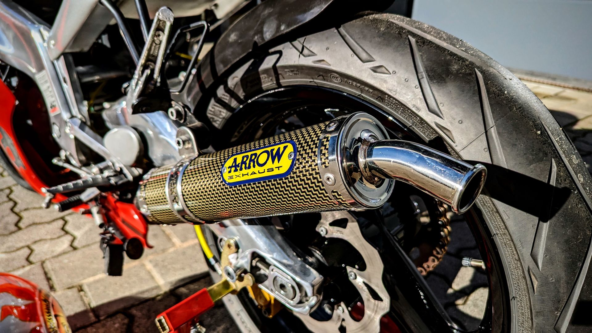 Vorbesitzer hat schon einiges gemacht. Felgen neu Lackiert, DID VR46 Kettensatz, Arrow Endschalldämpfer, Stahlflexletung, Kühlwasserschäuche von Samco in Gelb usw.