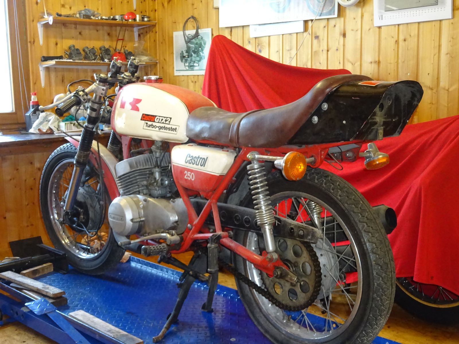 • Das hört sich doch schon mal gut an. Der Lacksatz ist stylisch, voll Eighties. So ähnlich hatte ich meine erste RD auch gemalert, nur ohne den coolen Turbo-Sticker. Wie willst du den Renner stylen?