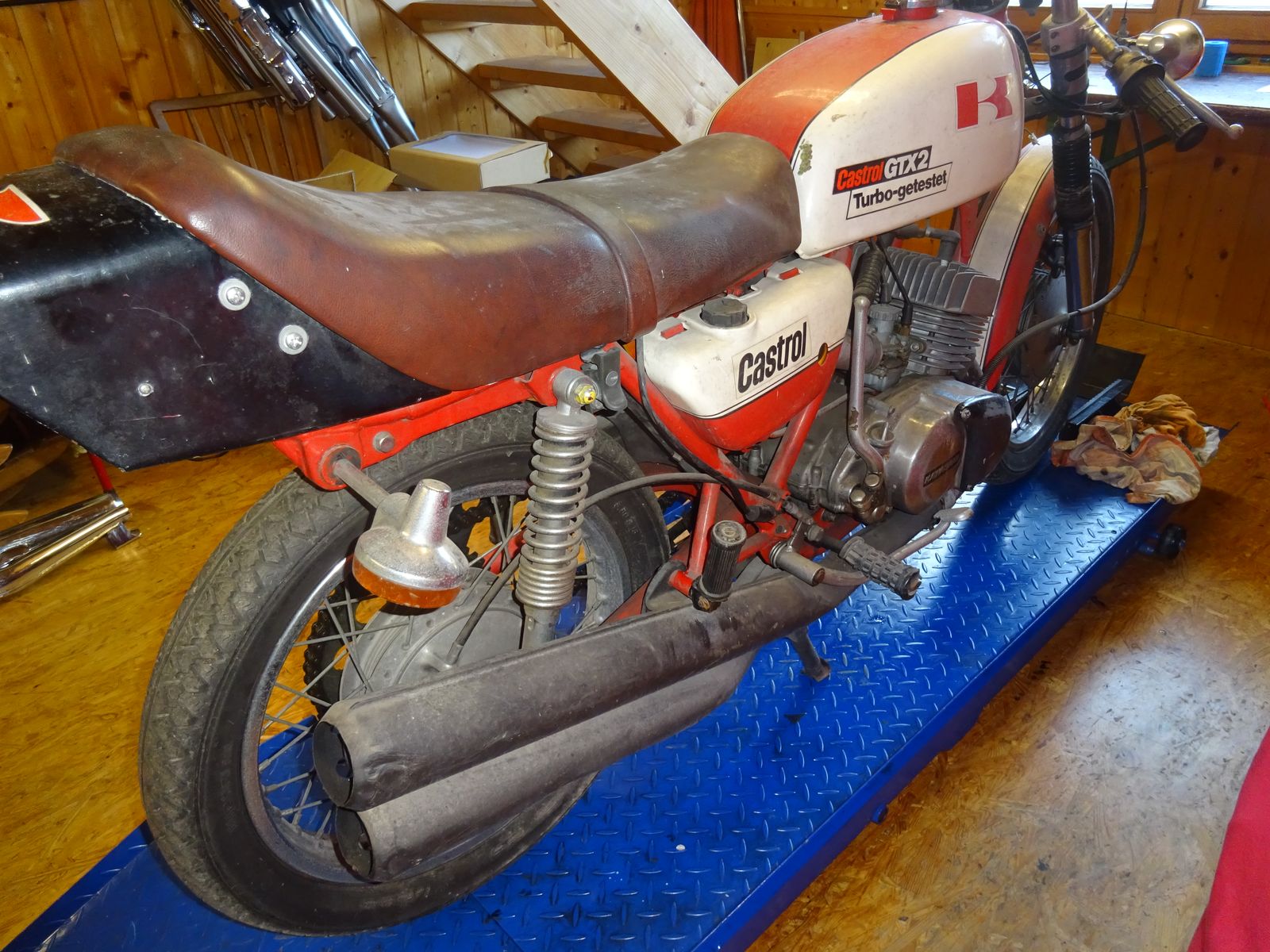 Heute habe ich das ganze Geraffel demontiert -- wenig Überraschunngen was den Motor anbetrifft - leider ist die Gabel aber doch wie befürchtet wie bei fast allen S1-S2 ´en rostig im Übergang in´s Tauchrohr - die Standrohre sind zu ersetzen !