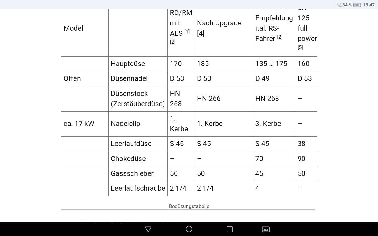 Setup Empfehlung Italienische RS Fahrer RM Dellorto VHST 28