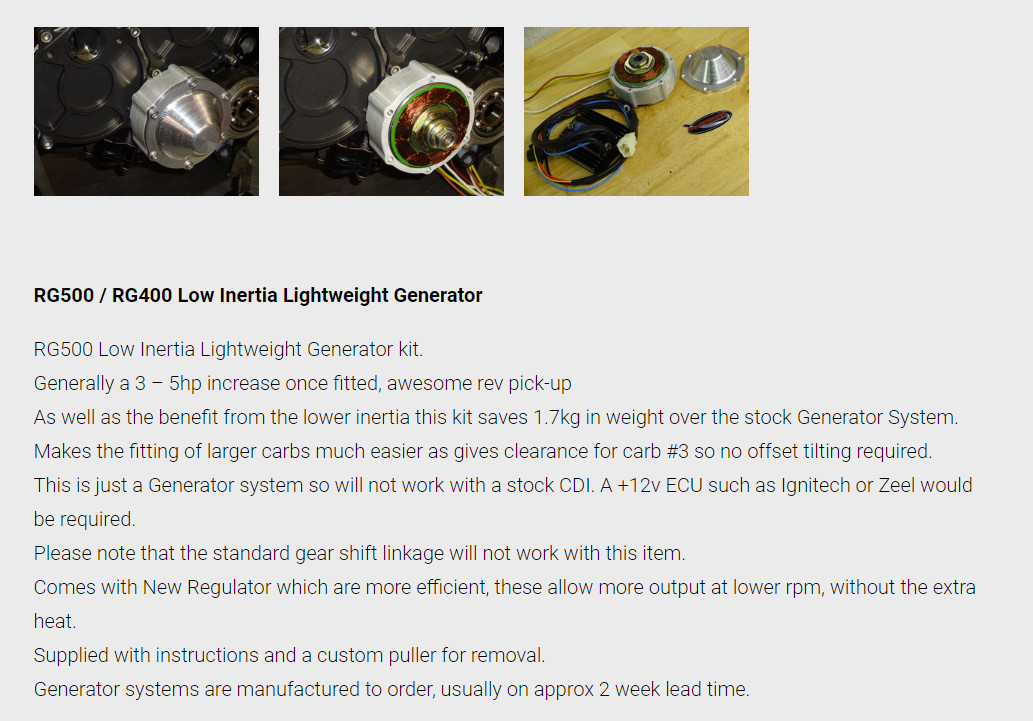 Bei der Rg500 noch keine Erfahrung, nur damals im Tuningzug bei den 50ern. Aber grundsätzlich ist das Verhalten ja gleich... Motoren hängen in den ersten Gängen viel spritziger am Gas, beim Anfahren braucht man mehr Feinmotorik (aufgrund weniger Schwungmasse).
