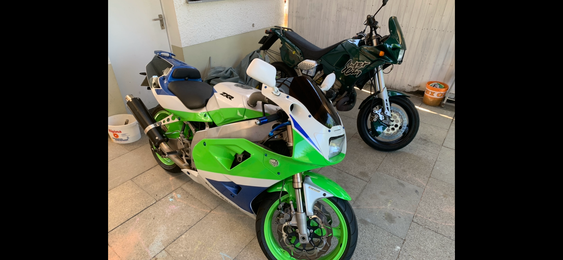 Meiner zxr( mein1. Moped seit 1992) hab ich 186000 km draufgebrannt da hab ich auch noch die Orginal Verkleidung im Schrank liegen u hier meine 2. Garnitur in neuem Lack dastehen.