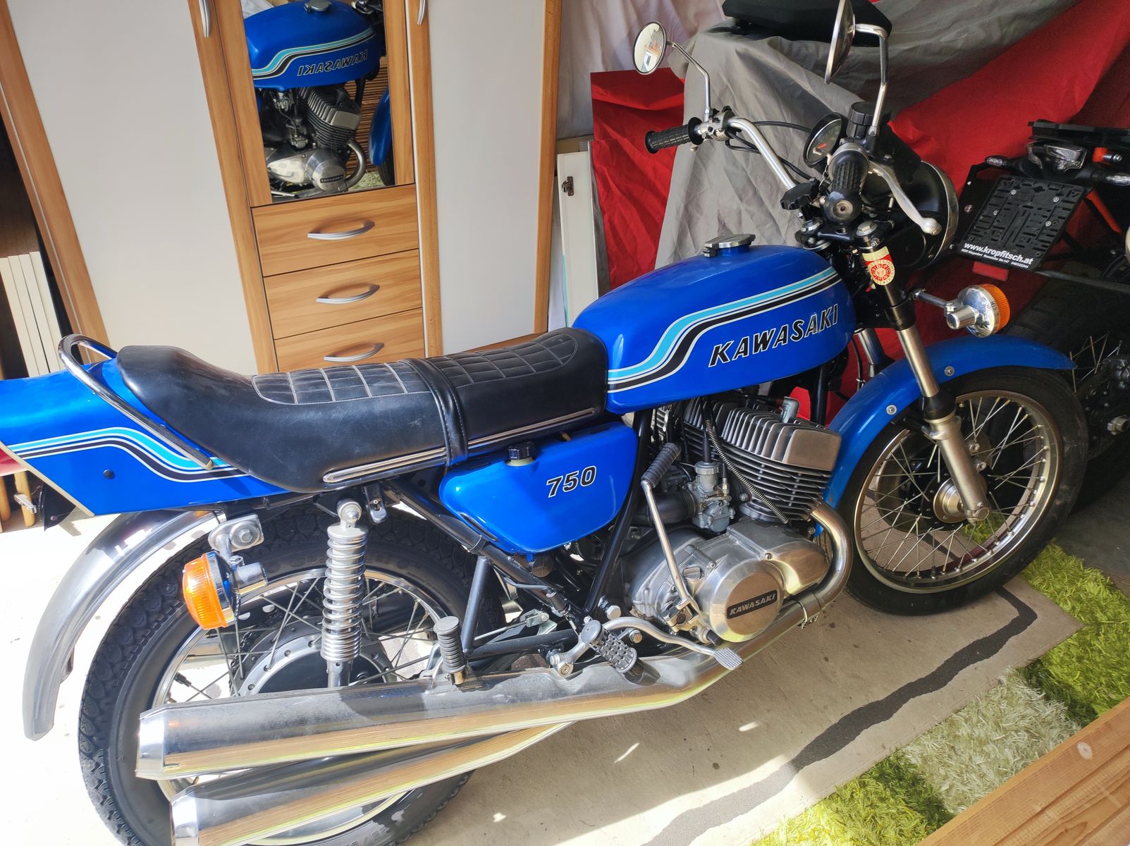 • Mein Name ist Sigi und ich komme aus dem Süden von Österreich. Ich habe mir aus einer Verlassenschaft eine Kawasaki 750 H2 Bj.72 mit 9000 Km gekauft. Das Bike ist komplett und sieht wie neu aus. Mittlerweile habe ich schon mitbekommen, dass man bei so alten Zweitaktern mitunter sehr blauäugig sein kann. Ich möchte sie unbedingt zum laufen bringen. Die einfachen Dinge sind: Batterie fehlt, Reifen hart und der Schaumgummi vom Luftfilter hat sich auf den Boden verabschiedet. Die Schieber vom Vergaser bewegen sich ohne Einschränkung. Der Vorbesitzer dürfte das Benzin abgelassen haben. Ich habe den Benzinhahn aufgedreht und dann sind die Schwimmerkammern übergelaufen. D.H Schwimmer leichtgängig machen. Muss ich sie im Ultraschallbad reinigen lassen wenn sie beweglich sind und optisch wie neu aussehen. Sind die Kurbelwellensimmeringe hinüber oder gibts reele Chancen ohne Motorzerlegung leben zu können? Wie kann ich die Ölpumpe kontrollieren ob sie läuft? Kupplung ist sehr schwergängig und die Vorderbremse ist tot.