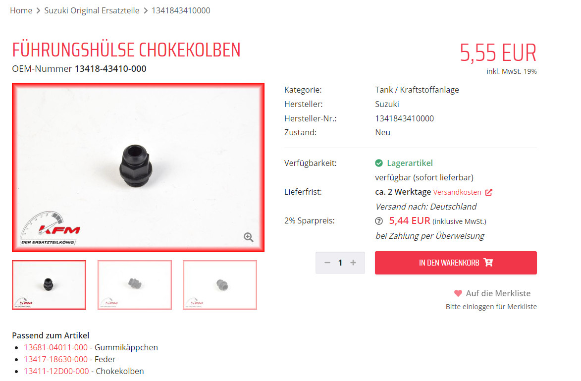 ich habe gesehen das bei mir am rechten Vergaser das Choke Plastikgeraffelgewinde abgebrochen ist.
