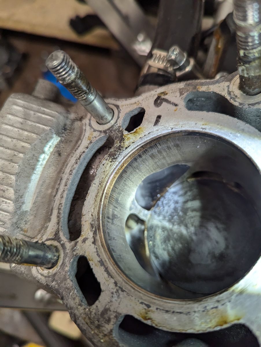 Ich habe jetzt den Kopf vom liegenden Zylinder abgenommen... Sieht so ein frisch beschichteter und gehonter Zylinder aus? Sorry aber habe auf dem Gebiet noch nicht so viel Erfahrung. Wie gesagt, 750km gelaufen im Einfahrbetrieb - sprich moderat. An einigen Stellen kann man mit dem Fingernagel auch Riefen erfühlen was gar nicht sein sollte.