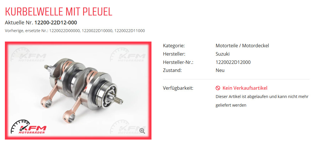 ............ übrigens soll es für die 22er auch keine neuen Kurbelwellen ( ab Werk !) mehr geben, kann das jemand bestätigen?