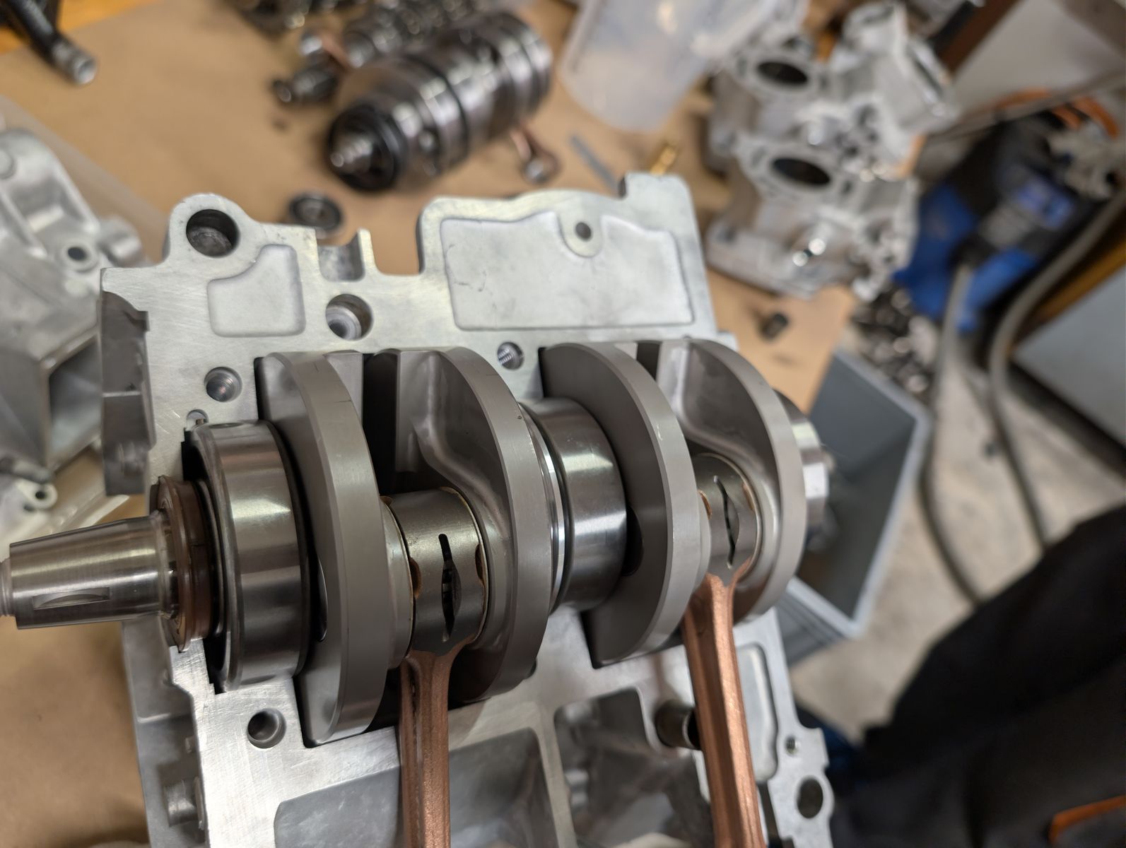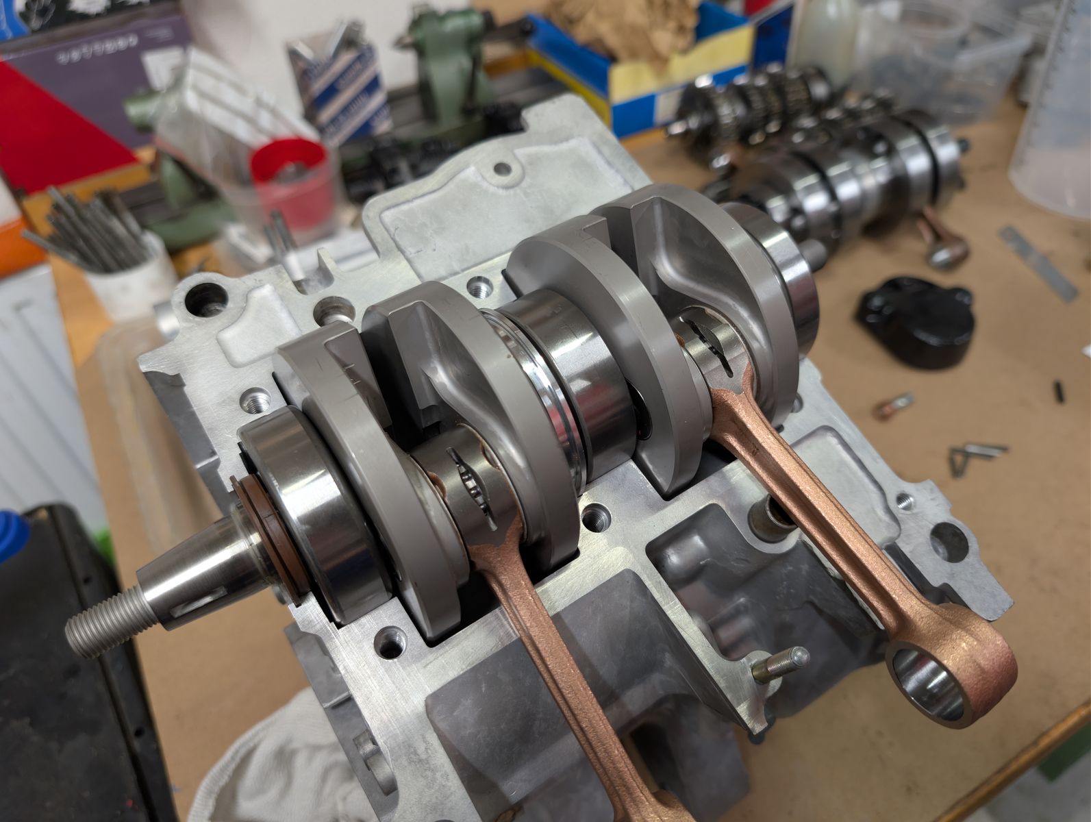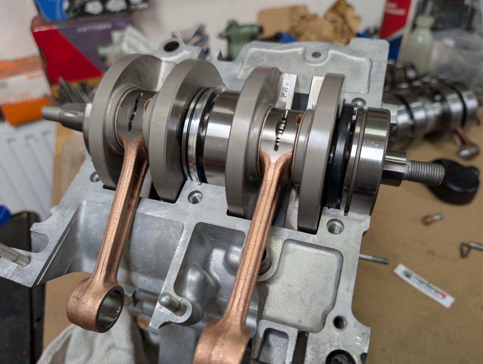 zusammen zu setzten und richten. Marc und ich haben dann auch gleich den Testmotor angefangen zu montieren unser Ziel ist es in den nächsten 14 tage auf den Prüfstand zu gehen und mal das ganze unter last zu testen.