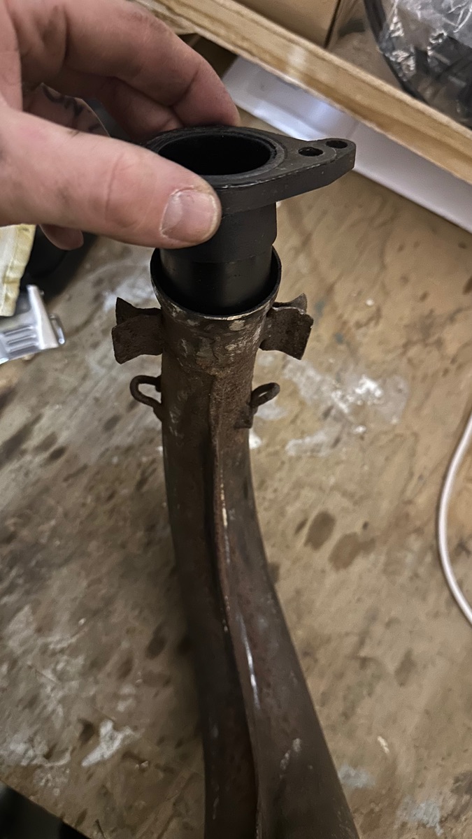 Der zylindrische Flansch im Bild ist vom Arrow. Die originalen brauchen den Kugelflansch. 99% aller Zubehöranlagen haben zylindrische Flänsche.