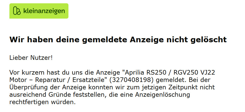 Hier die Antwort von Kleinanzeigen