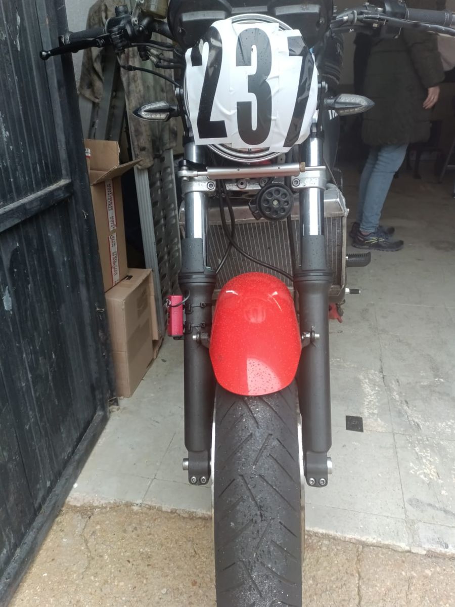 Schwarz Lager im Lenkkopf und die Schwinge hat die Hilmer Kegelrollen Lager, umgebaut auf Innenhülse.
