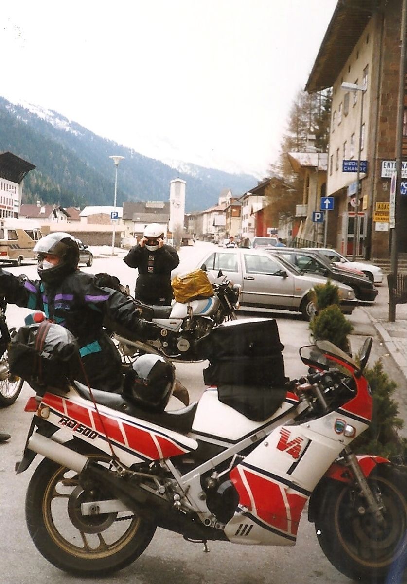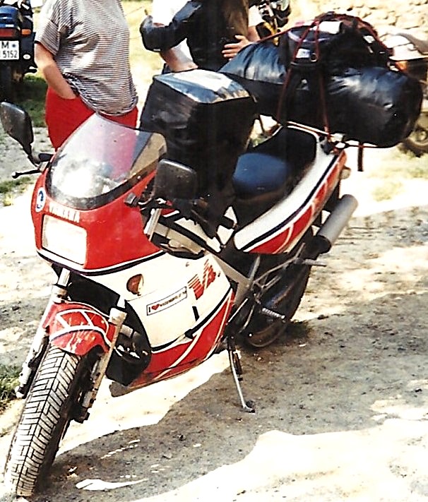 • Hab zufällig ein Bild von meiner ersten RG gefunden. Urlaub 1994 in Frankreich. Paar Tage später war sie Vergangenheit. Kumpel hat mich mit seiner GSXR 750 von hinten abgeschossen. Versicherungstechnisch waren beide Totalschaden.