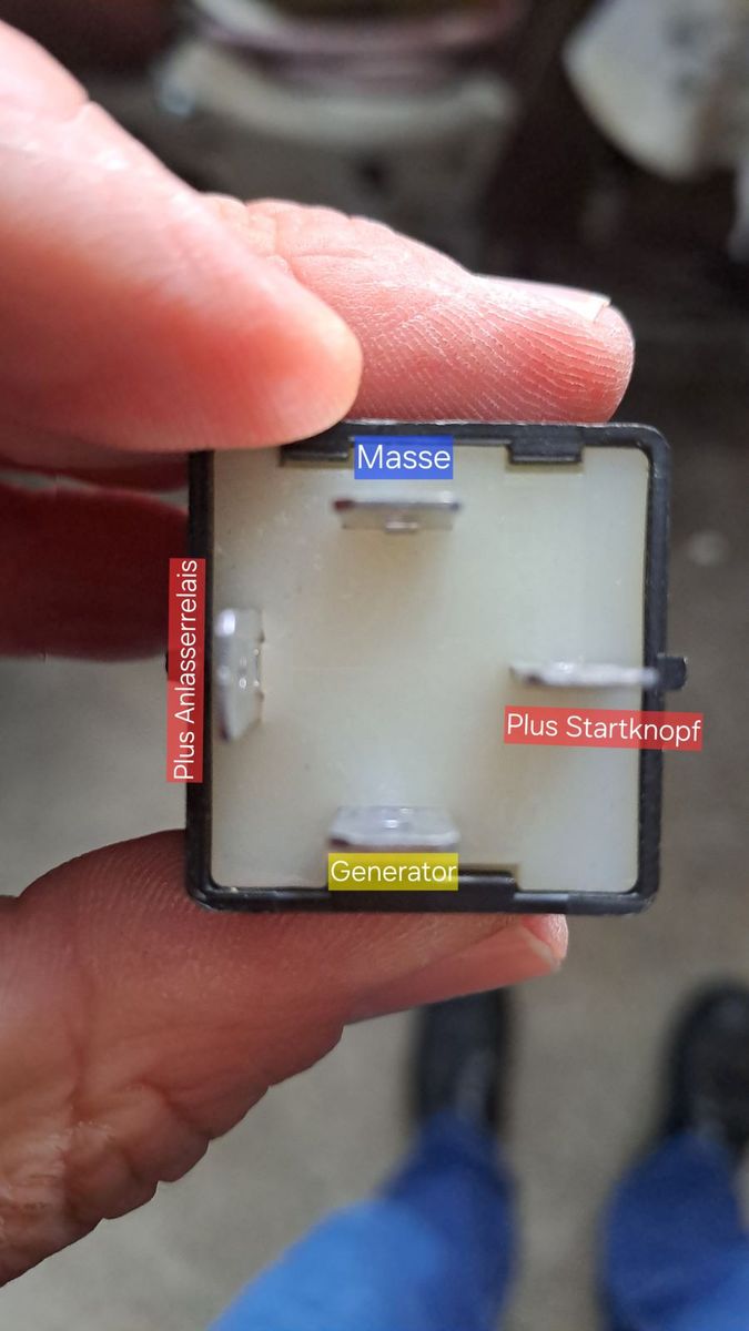Es soll bei laufenden Motor die versehentliche Betätigung des Anlassers verhindern. Dazu reagiert es auf die Induzierte Generatorspannung der Lichtmaschine.